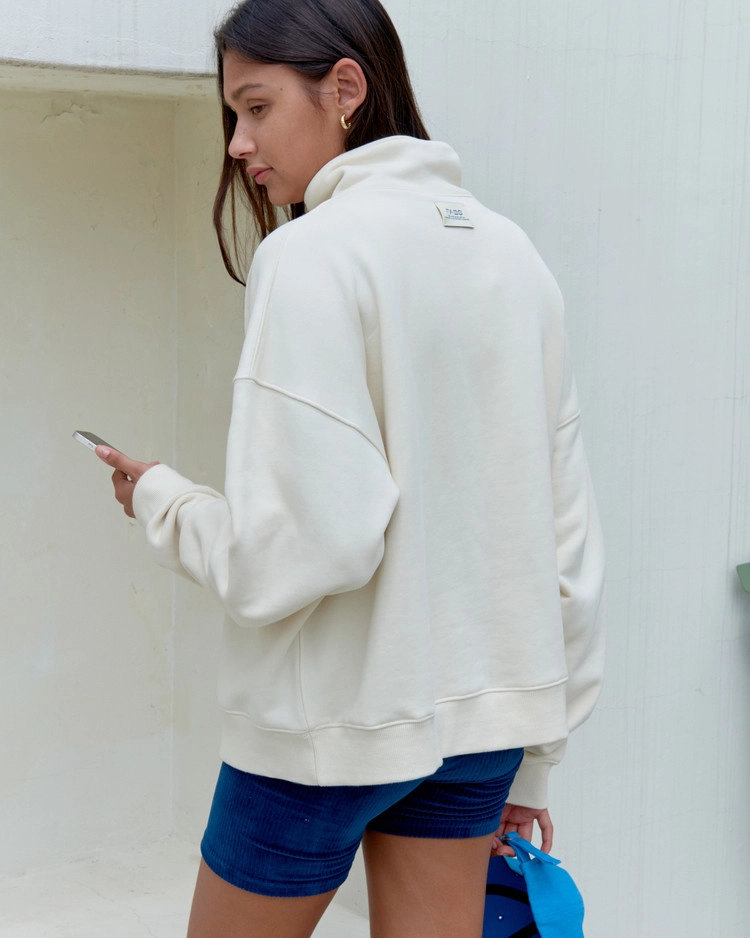파브스의 하프 집업 맨투맨은 활동성을 강조한 루즈한 핏으로, 집에서 뿐만 아니라 원마일 룩, 스포티한 룩 등 다양한 조합이 가능한 제품입니다.